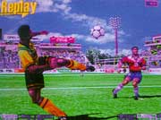 | Apesar da Sega não ter autorização para colocar o nome dos jogadores, ele fez as caracteristicas identicas, como a carequinha de Ronlado. Mas como a Konami e EA, a Sega fez uma opção para mudar os nomes dos jogadores. No decorrer do jogo o tempo pode mudar, começar a chover, o campo pode começar a perder seus pedaços, criar poças d'aguas.O Jogo será fiel a versão arcade. Um dos pontos fortes será o replay, com varios angulos, e a possibilidade de gravar seus como em WE4 para psx. Terá quase que todos os principais times internacionais. Irá ter varias opções, Copa do mundo, League, Treinamento e varias outras opções.Ele será sem duvida nenhuma o futebol do ano 2000, o Winning Eleven 4 terá muito trabalho para segurar o Virtua Stryke. | ||||