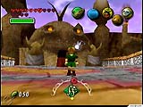 dos 64-Bit,Link permanecia no reino de Hyrule e vagava pelos seus arredores...agora,no entando,ele pode ir a uma dimensão paralela,que aliás será o foco principal e é onde o perigo está. A aventura tem início poucos messes depois do episódio Ocarina of Time,quando a paz e a tranqüilidade já predominan em Hyrule .Um dia,na floresta,Link encontra um estranho homem mascarado chamado Stalkid,que afirma ter seqüestrado a égua do herói,Epona.O estranho desaparece logo em seguida entrando em um portal mágico..Link,sem pensar,segue o mascarado e,ao atravessar o portal,vê-se transportado a uma dimensão paralela ao reino de Hyrule. O novo mundo não deixa de se familiar ao herói,pois as semelhanças com sua terra natal são evidentes.Por outro lado,,Link descobre que há muito o que aprender nessa dimensão...os habitantes locais que uma lua se aproxima-se em rota de colisão com o planeta ,o que viria causar a destruição completa dele.Olhando para o céu o herói pode concluir que a história é verdadeira,pois a lua está realmente próxima e a medida que o tempo passa ela aproxima-se trazendo consigo o pavor e o caos à população. Segundo o própio Shigero Myamoto,a versão Zelda Gaiden deverá utilizar o sistema de jogo em tempo real semelhante ao de nosso planeta .Ou seja,levam aproximadamente 24 horas para se completar um dia inteiro de aventura...isso será uma experiência inédita no mundo dos videogames.Assim,dando mais realismo à aventura,as noites deverão ser realmente tenebrosas e o jogador não esperar um pouquinho até que ela passe...serão horas!Outra característica que mostra a influência do tempo nessa versão fica por conta da barra na parte inferior da tela,que apresenta o tempo restante até a colisão.E tem outras novidades que você só vai ver jogando,agora só nos resta esperar! |